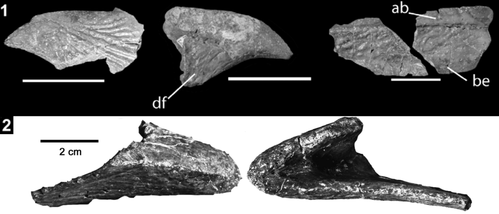 Références : Reyes, W.A.; Parker, W.G.; Heckert, A.B., 2023, A new aetosaur (Archosauria: Pseudosuchia) from the upper Blue Mesa Member (Adamanian: Early-mid Norian) of the Late Triassic Chinle Formation, northern Arizona, USA, and a review of the paratypothoracin Tecovasuchus across the southwestern USA. PaleoBios. 40(9): 1–15.