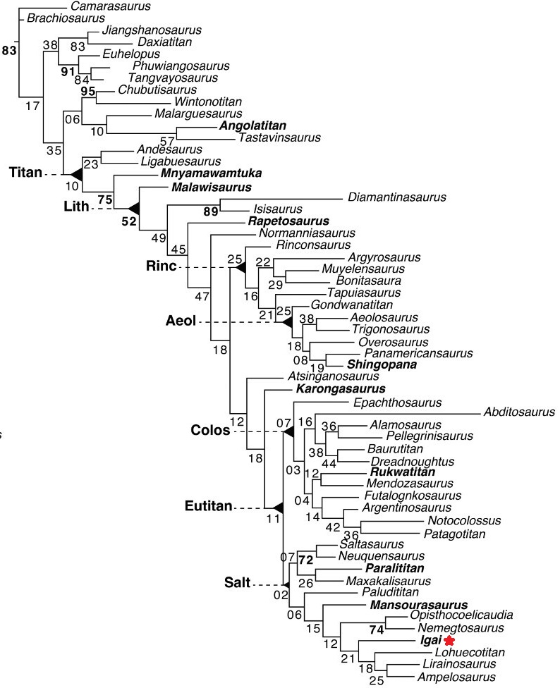 L’analyse phylogénétique réalisée par Gorscak et ses collègues a classé Igai dans un clade de genres d’Eurasie et d’Afrique du Nord, au sein de Saltasauridae. Ce clade correspond à la sous-famille des Opisthocoelicaudiinae. Igai se trouve être très proche d’Ampelosaurus, de Lirainosaurus et de Lohuecotitan. Il est également proche de Mansourasaurus, un genre qui a également été trouvé dans la formation géologique de Quseir. En général, les Opisthocoelicaudiinae n’incluent pas les genres d’Europe et d’Afrique. Ce clade de saltasauridés correspond alors à Lirainosaurinae. Les résultats de Gorscak et ses collègues confirment l’existence d’un clade de saltasauridés d’Europe et d’Afrique (Lirainosaurinae), dans lequel se place Igai.