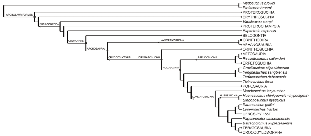 Références : Kischlat, E.-E., 2023, A new nominal genus for « Prestosuchus » chiniquensis Huene, 1938 (Triassic of southern Brazil): Huenesuchus, genus novus et combinatio nova ». Revista Brasileira de Paleontologia. 26(2): 69–96.