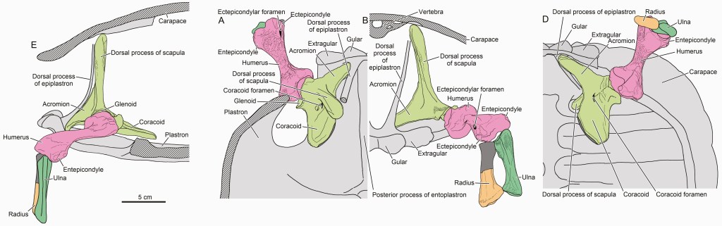 Références : Szczygielski, T.; Piechowski, R., 2023, Limb anatomy of the Triassic turtles: appendicular osteology of Proterochersis (Testudinata, Proterochersidae). Zoological Journal of the Linnean Society. zlad057.