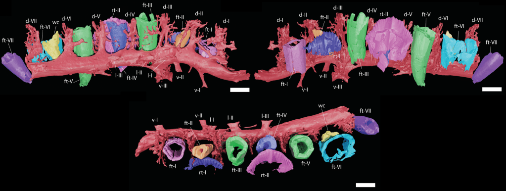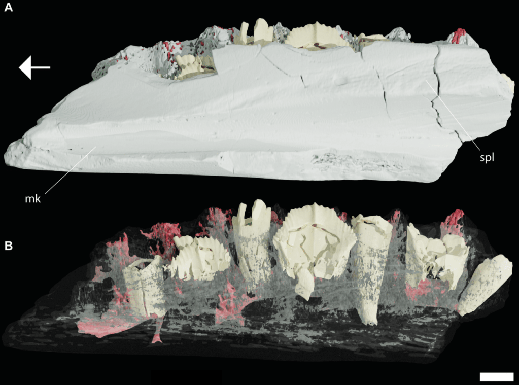 L’analyse du système neurovasculaire des mâchoires des sauropsides permet d’en apprendre plus sur leur métabolisme, leur écologie alimentaire et leur stratégie d’alimentation. Malheureusement, cet aspect de la recherche sur les sauropsides fossiles reste encore peu exploré. Pour obtenir des données comparables avec d’autres spécimens, il est nécessaire d’analyser le système neurovasculaire de nombreux taxons. Rotatori et ses collègues décrivent ainsi le système neurovasculaire du dentaire d’un dryosauridé indéterminé du Portugal.