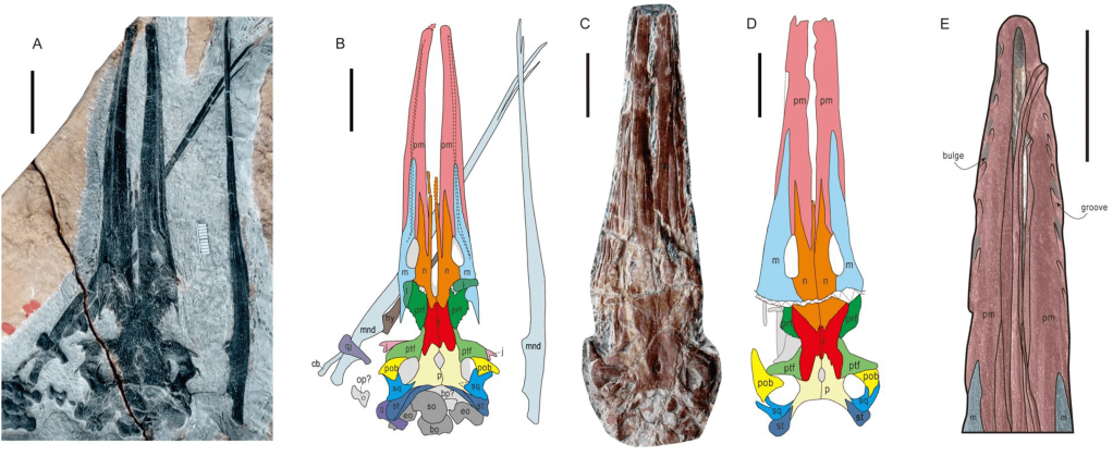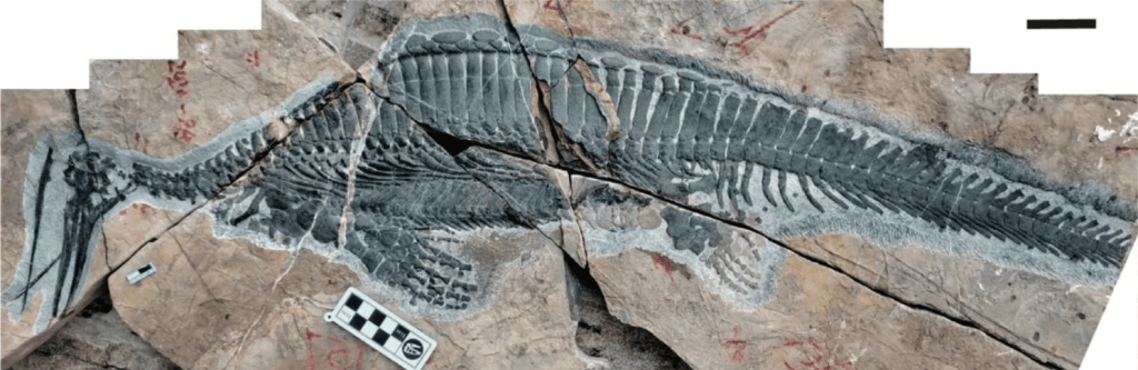Références : Fang, Z.C.; Li, J.L.; Yan, C.B.; Zou, Y.-R.; Tian, L.; Zhao, B.; Benton, M.J.; Cheng, L.; Lai, X.-L., 2023. First filter feeding in the Early Triassic: cranial morphological convergence between Hupehsuchus and baleen whales. BMC Ecology and Evolution. 23: 36.