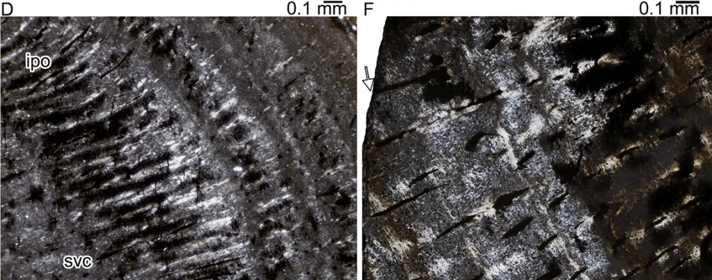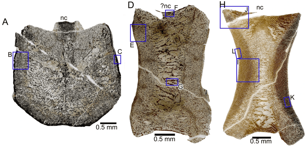 Références : Klein, N.; Sander, P.M.; Liu, J.; Druckenmiller, P.; Metz, E.T.; Kelley, N.P.; Scheyer, T.M., 2023, Comparative bone histology of two thalattosaurians (Diapsida: Thalattosauria): Askeptosaurus italicus from the Alpine Triassic (Middle Triassic) and a Thalattosauroidea indet. from the Carnian of Oregon (Late Triassic). Swiss Journal of Palaeontology. 142: 15.