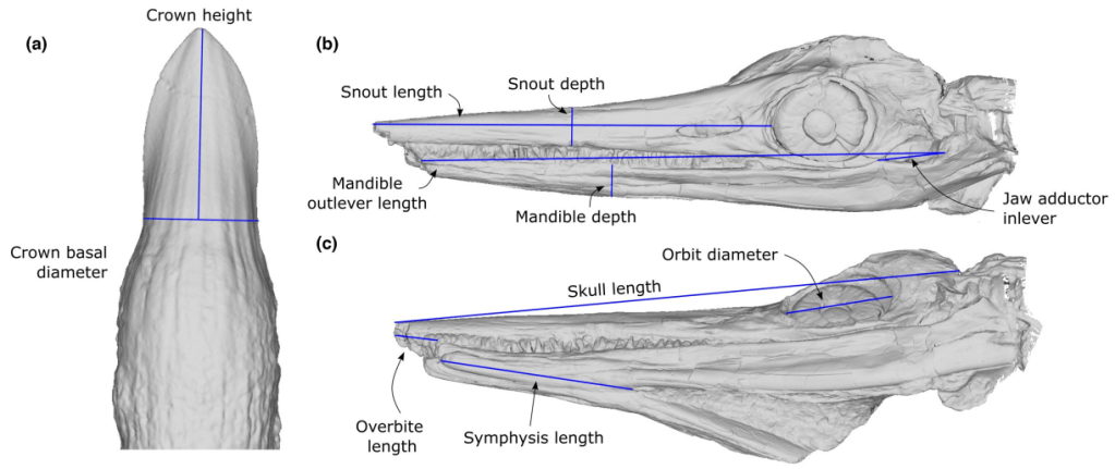 Référence : Bennion, R.F.; Maxwell, E.E.; Lambert, O.; Fischer, V., 2023, Craniodental ecomorphology of the large Jurassic ichthyosaurian Temnodontosaurus. Journal of Anatomy.