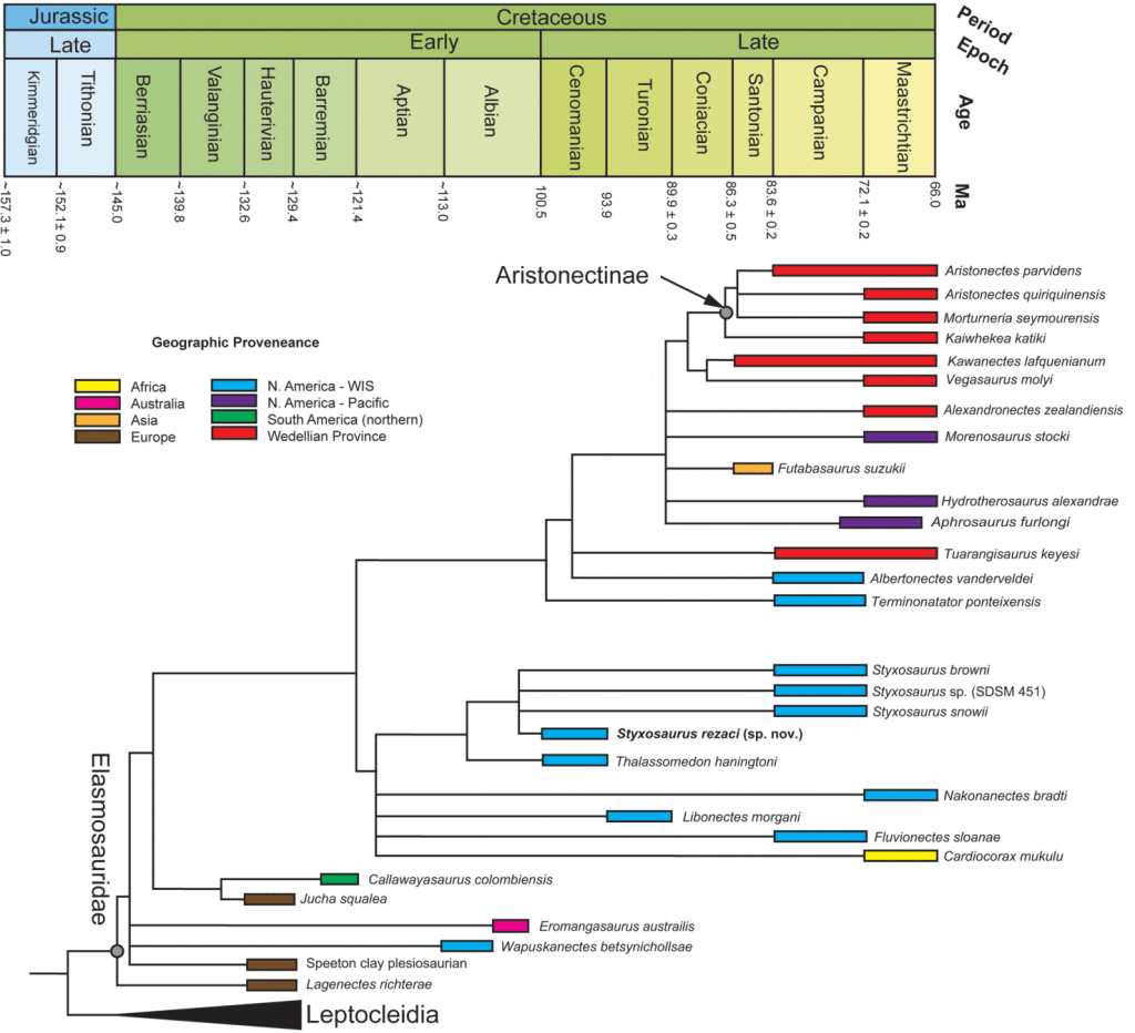 Références : Smith, E.A.; O’Keefe, F.R., 2023, Occurrence of Styxosaurus (Sauropterygia: Plesiosauria) in the Cenomanian: implications for relationships of elasmosaurids of the Western Interior Seaway. Journal of Systematic Palaeontology. 21: 1, 2242846.