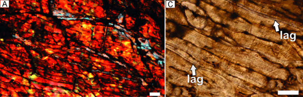 Références : González, R.; Cerda, I.A.; Moreno, A.P.; Calvo, J.O.; González Riga, B.J., 2023, Paleobiology of Rinconsaurus caudamirus and Muyelensaurus pecheni (Sauropoda, Titanosauria) from the Neuquén Group, Upper Cretaceous of Argentina: inferences from long bone histology. Cretaceous Research. 105682.