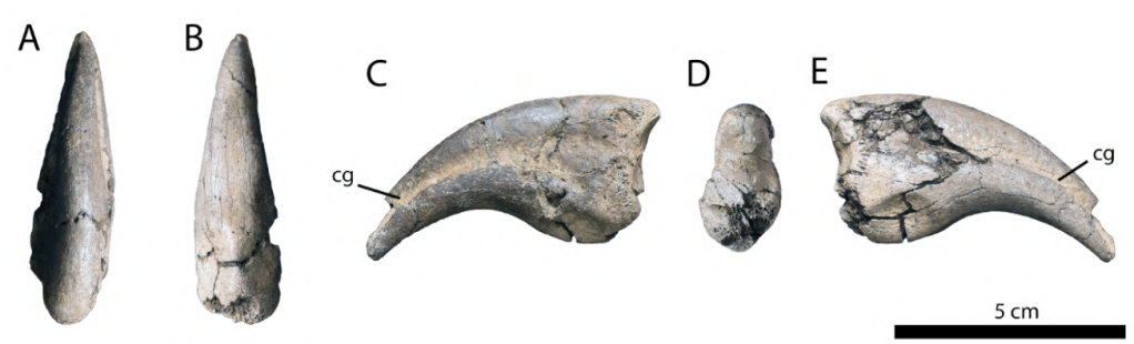 Voris et ses collègues notent que l’unguéal TMP 2022.8.6 est de taille et de morphologie similaire aux unguéaux d’Anzu. Par conséquent, cet unguéal appartient très probablement au même taxon que le métatarsien TMP 1990.52.10. En revanche, l’unguéal TMP 2022.8.7 est bien plus petit, et est plus similaire aux unguéaux de Leptorhynchos. Voris et ses collègues pensent donc qu’un second taxon de caenagnathidé plus petit était également présent dans la formation géologique de Scollard.