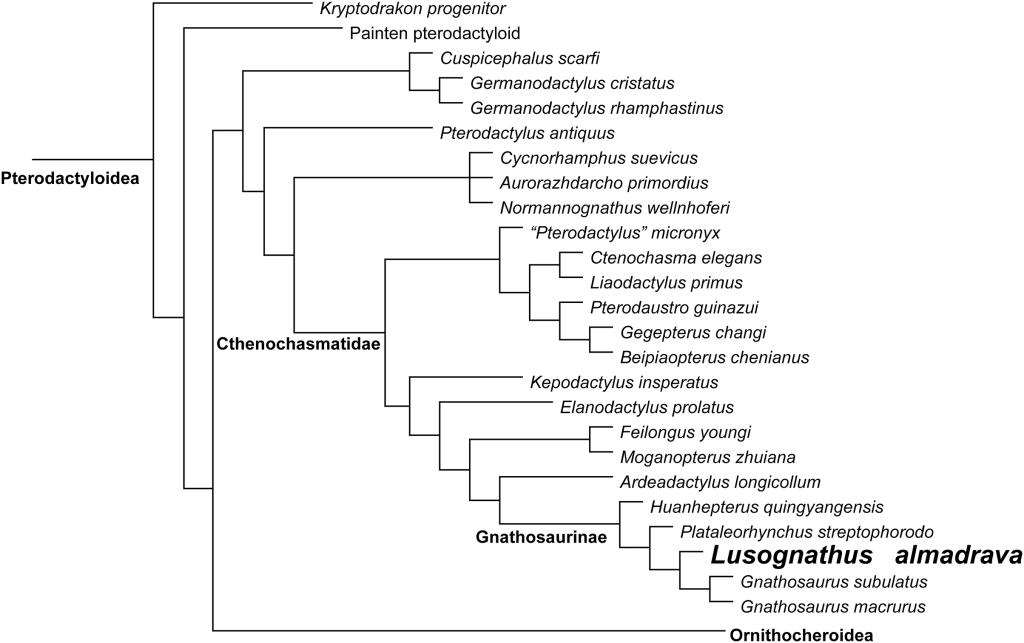 L’analyse phylogénétique de Fernandes et ses collègues a classé Lusognathus au sein de Ctenochasmatidae, dans la sous-famille des gnathosaurinés. Il s’y place en taxon-soeur de Gnathosaurus, dans une position dérivée. Lusognathus représente un nouveau taxon européen de gnathosauriné du jurassique supérieur, s’additionnant à Gnathosaurus d’Allemagne et d’Angleterre et à Plataleorhynchus d’Angleterre.