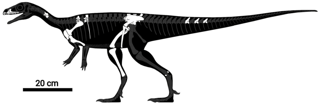 Référence : Moro, D.; Damke, L.V.S.; Müller, R.T.; Kerber, L.; Pretto, F.A., 2023, An unusually robust specimen attributed to Buriolestes schultzi (Dinosauria: Sauropodomorpha) from the Late Triassic of southern Brazil. The Anatomical Record.