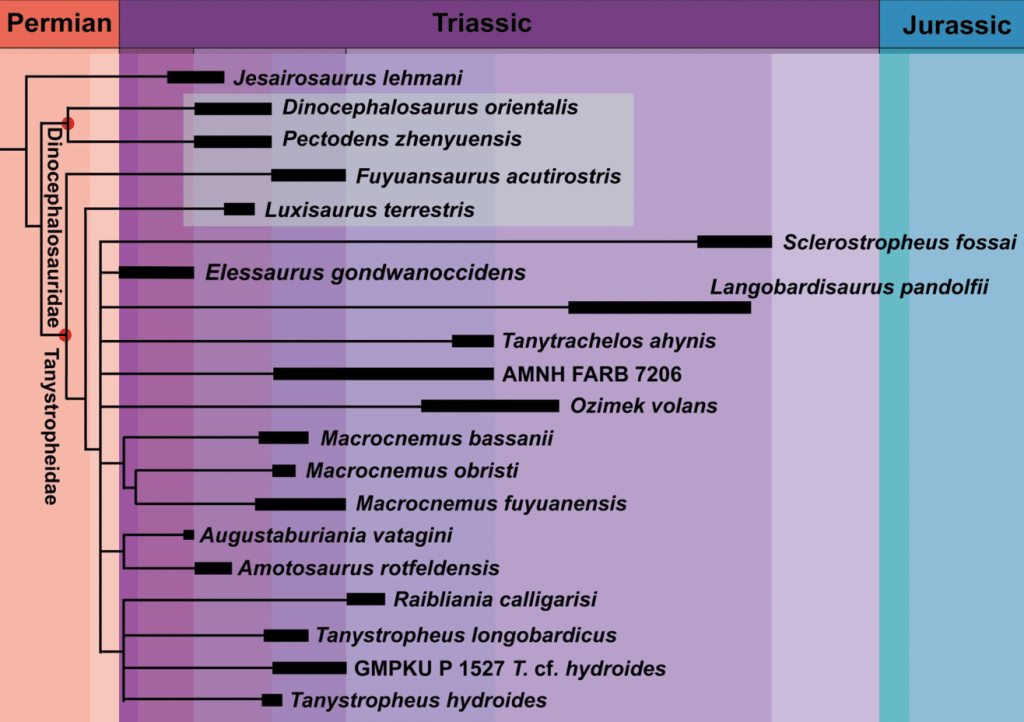 Référence : Lu, Y.-T.; Liu, J., 2023, A new tanystropheid (Diapsida: Archosauromorpha) from the Middle Triassic of SW China and the biogeographical origin of Tanystropheidae. Journal of Systematic Palaeontology. 21(1): 2250778.