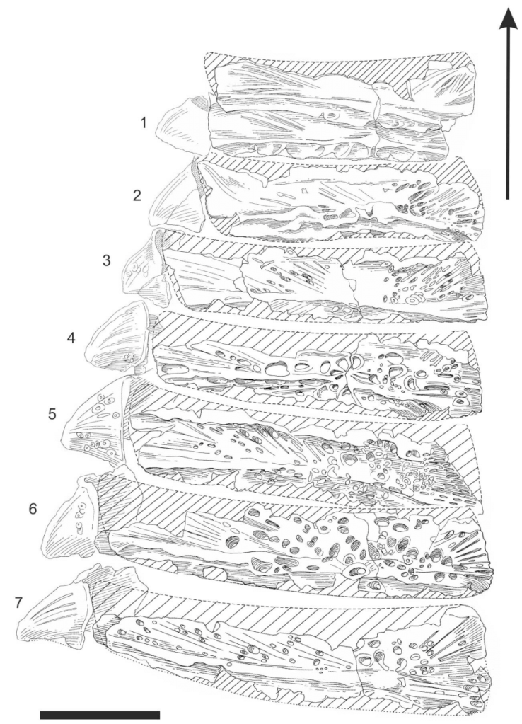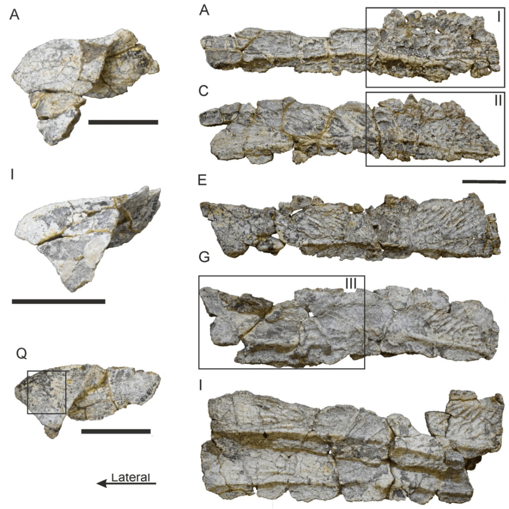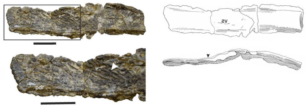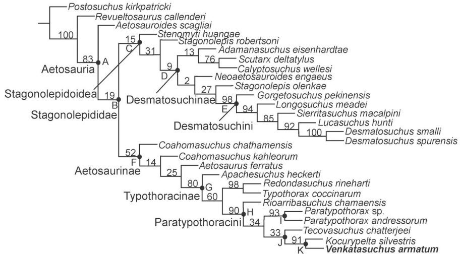 Références : Haldar, A.; Ray, S.; Bandyopadhyay, S., 2023, A new typothoracine aetosaur (Archosauria, Pseudosuchia) from the Upper Triassic of India with insights on biostratigraphy, diversification, and paleobiogeography. Journal of Vertebrate Paleontology. e2253292.