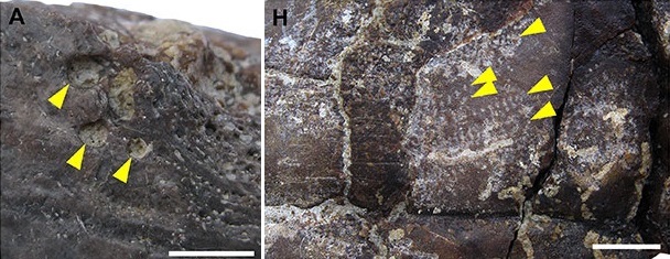 Références : El Hedeny, M.; Mohesn, D.; Tantawy, A.-A.; El-Sabbagh, A.: Abdel Gawad, M.; Abu El-Kheir, G., 2023, Bioerosion traces on the Campanian turtle remains: New data from the lagoonal deposits of the Quseir Formation, Kharga Oasis, Egypt. Palaeontologia Electronica. 26(3): a40.