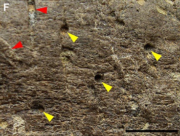 El Hedeny et ses collègues ont identifié la présence de 25 petites perforations sur la carapace NVP022. Ces perforations sont les entrées de terriers en forme de U, qui comportent chacun deux ouvertures. El Hedeny et ses collègues ont identifié ces traces comme appartenant à l’ichnotaxon Osteichnus ossiobontum. Osteichnus correspond à des marques laissées par des larves d’éphémères détritivores.