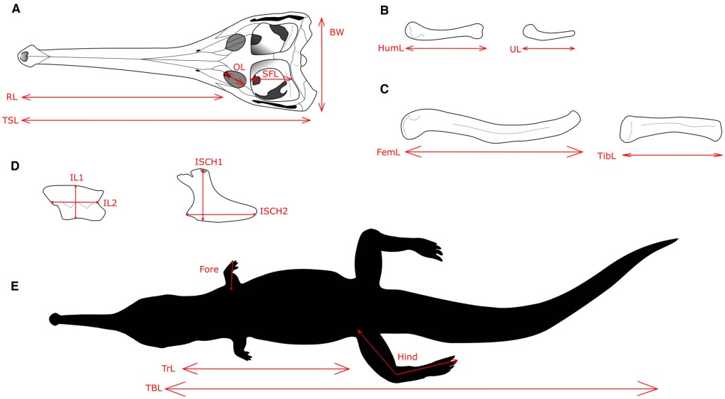 Johnson et ses collègues ont mesuré les éléments squelettiques de 62 individus de Macrospondylus bollensis de la formation géologique de Posidonia Shale. Ces spécimens sont très bien conservés et sont d’une gamme de taille allant de 1 à 5 mètres de longueur. Il s’agit d’individus juvéniles à adultes, ce qui permet d’analyser les changements dans les proportions corporelles de Macrospondylus au cours de l’ontogénèse. Johnson et ses collègues peuvent ainsi étudier comment se sont développées les spécialisations anatomiques des teleosauridés, notamment leurs membres courts et leur museau allongé.