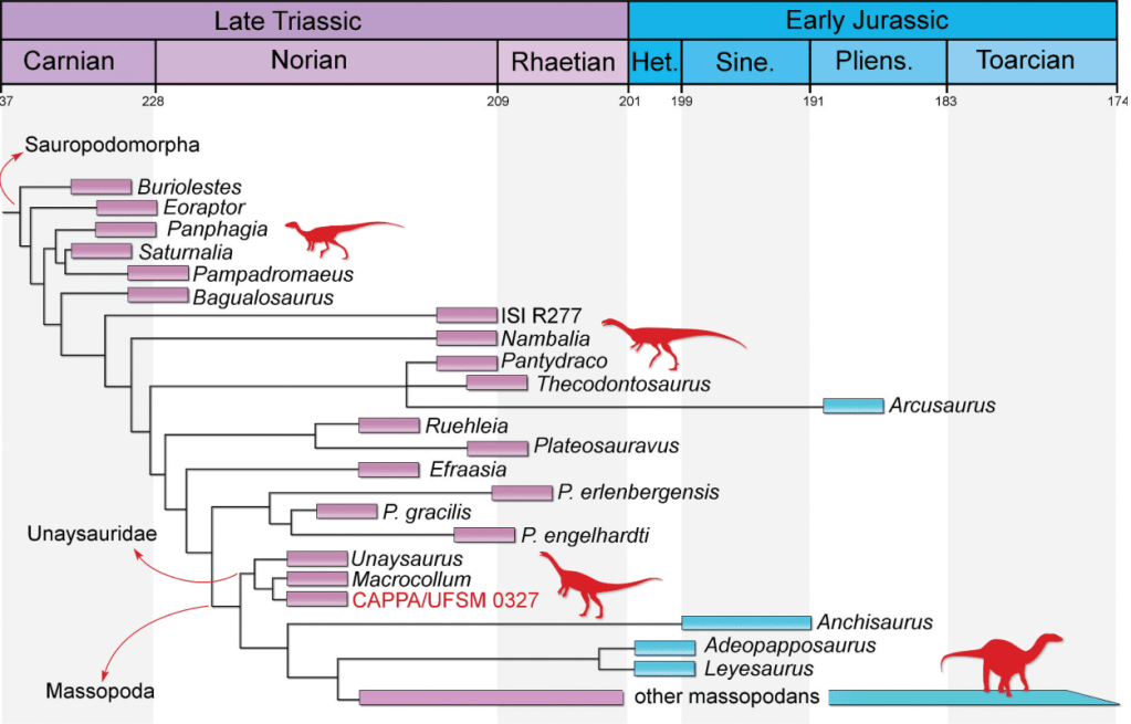 Références : Prestes de Bem, F.; Müller, R.T., 2023, First record of Macrocollum itaquii (Dinosauria: Sauropodomorpha) outside the type locality and its biostratigraphic significance. Historical Biology.