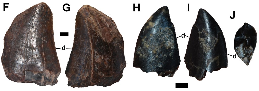 Les spécimens décrits par Agnolín et ses collègues comprennent 5 dents prémaxillaires partielles (MPM-PV 23359), douze dents dentaires ou maxillaires partielle (MPM-PV 23360) et une extrémité distale de phalange (MPM-PV 23361). Ces spécimens présentent une morphologie typique des abelisauridés, mais leur nature isolée et fragmentaire ne permet pas une attribution taxonomique plus précise. Agnolín et ses collègues réfèrent donc MPM-PV 23359, MPM-PV 23360 et MPM-PV 23361 à Abelisauridae indet.