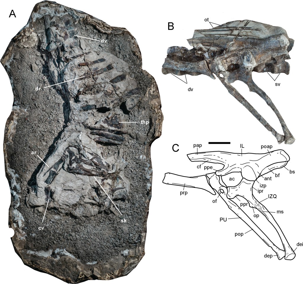 Références : Agnolín, F.L.; Herrera, G.Á.; Rolando, M.A.; Motta, M.; Rozadilla, S.; Verdiquio, L.; D’Angelo, J.S.; Moyano-Paz, D.; Varela, A.N.; Sterli, J.; Bogan, S.; Miner, S.; Moreno, A.; Muñoz, G.; Isasi, M.P.; Novas, F.E., 2023, Fossil Vertebrates From The Cerro Fortaleza Formation (Upper Cretaceous), Santa Cruz Province, Argentina. Cretaceous Research. 105735.