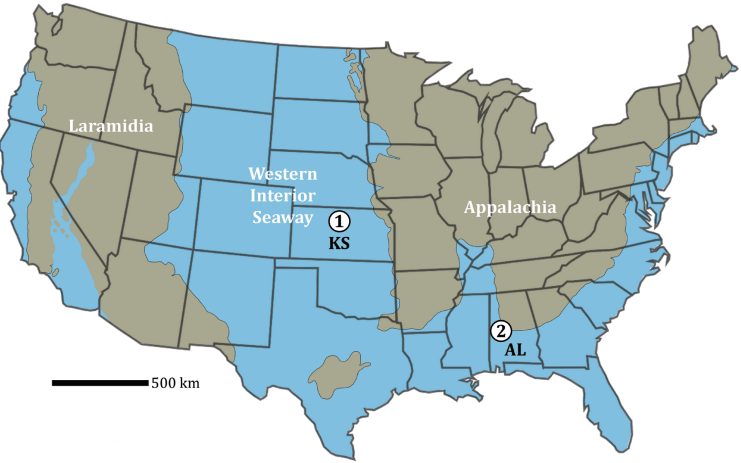 Kiernan, C.R., 2002, Stratigraphic distribution and habitat segregation of mosasaurs in the Upper Cretaceous of western and central Alabama, with an historical review of Alabama mosasaur discoveries. Journal of Vertebrate Paleontology. 22(1): 91-103.