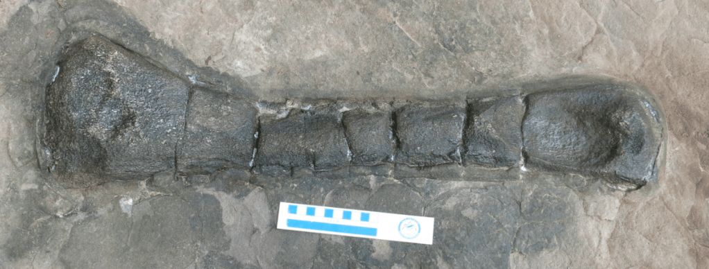 Référence : Lim, V.; Buffetaut, E.; Tong, H.; Cavin, L.; Pann, K.; Ngoeun, P.P., 2023, The First Dinosaur from the Kingdom of Cambodia: A Sauropod Fibula from the Lower Cretaceous of Koh Kong Province, South-Western Cambodia. Fossil Studies. 1: 49-59.