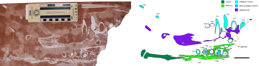 Références : Serafini, G.; Foffa, D.; Young, M.T.; Friso, G.; Cobianchi, M.; Giusberti, L., 2023, Reappraisal of the thalattosuchian crocodylomorph record from the Middle-Upper Jurassic Rosso Ammonitico Veronese of northeastern Italy: Age calibration, new specimens and taphonomic biases. PLoS ONE. 18(10): e0293614.