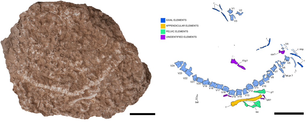 Serafini et ses collègues émettent l’hypothèse que les deux vertèbres MGP-PD 6761 et MGP-PD 6572 (appelées « Plesiosaurus italicus » par De Zigno) soient des vertèbres caudales de metriorhynchidé. Toutefois, ces deux éléments sont mal conservés et isolés, ce qui ne permet pas d’être certain de cette attribution. Serafini et ses collègues réfèrent avec prudence MGP-PD 6761 et MGP-PD 6572 à Sauropsida indet. Ils confirment ensuite l’attribution de la mandibule FOS03839 à Metriorhynchoidea indet. faite par Cau (2019) et l’attribution du squelette MGP-PD 27566 à Aeolodontinae indet. faite par Serafini et al. (2022).