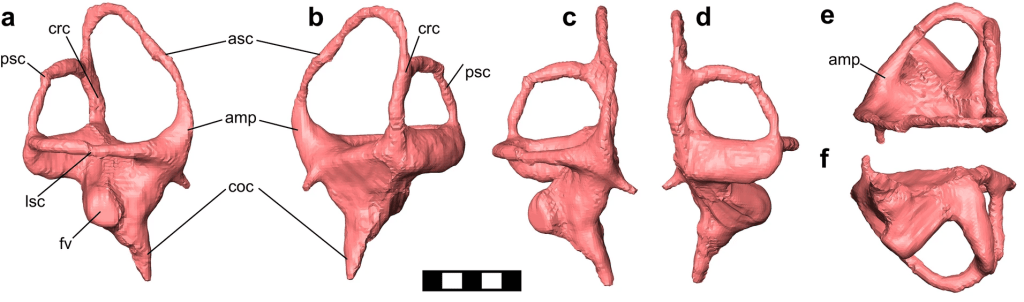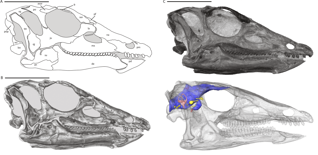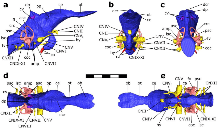 Références : Button, D.J.; Zanno, L.E., 2023, Neuroanatomy of the late Cretaceous Thescelosaurus neglectus (Neornithischia: Thescelosauridae) reveals novel ecological specialisations within Dinosauria. Science Reports. 13: 19224.