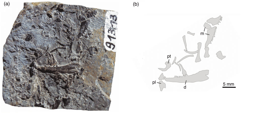 Références : Sues, H.-D.; Schoch, R.R., 2023, The oldest known rhynchocephalian reptile from the Middle Triassic (Ladinian) of Germany and its phylogenetic position among Lepidosauromorpha. The Anatomical Record.