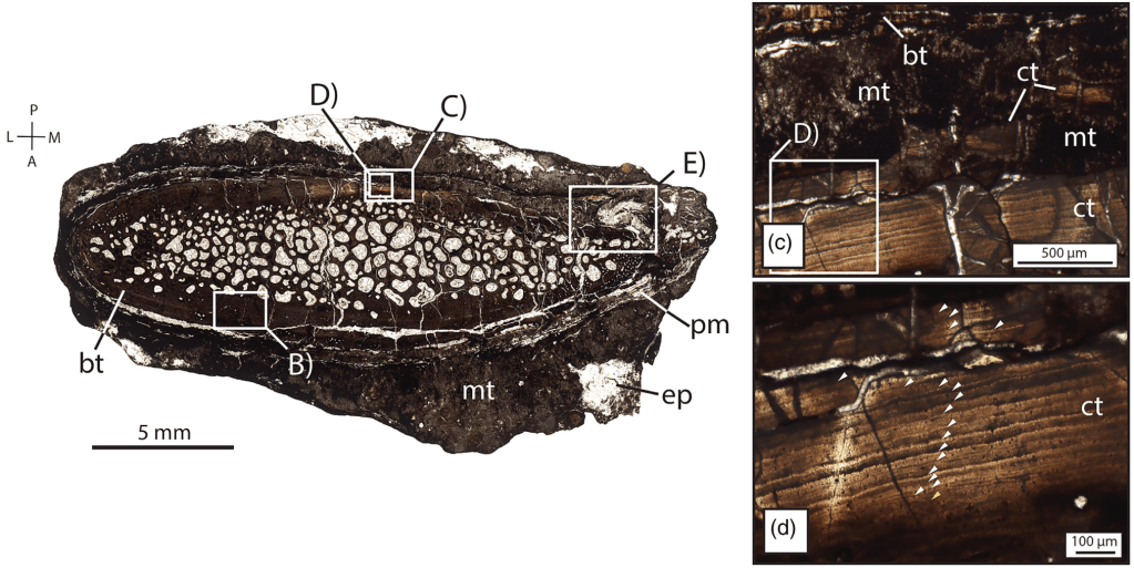 Références : Parker, W.G.; Reyes, W.A.; Marsh, A.D., 2023, Incongruent ontogenetic maturity indicators in a Late Triassic archosaur (Aetosauria: Typothorax coccinarum). The Anatomical Record.