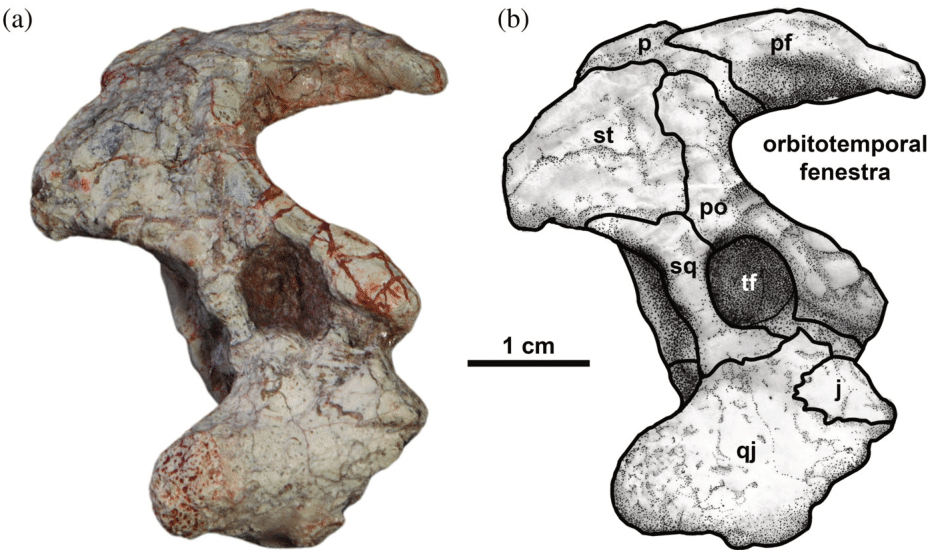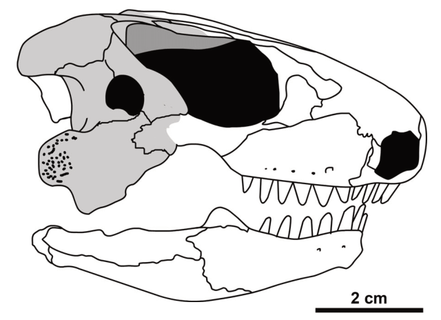 Référence : Pohlmann, K.; Cisneros, J.C.; Da-Rosa, A.A.S.; Pinheiro, F.L., 2023, Temporal fenestration in a Procolophon trigoniceps specimen (Procolophonoidea) from the Lower Triassic of Brazil. The Anatomical Record.
