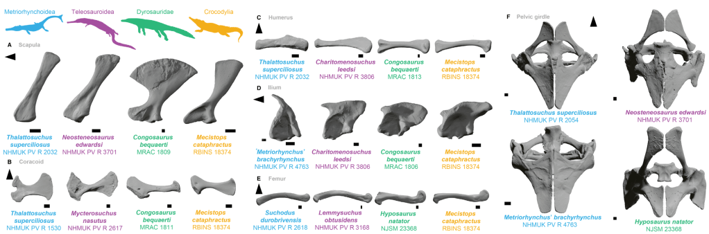 Référence : Scavezzoni, I.; Fischer, V., 2023, Limited convergence in the postcranium of aquatic Crocodylomorpha. Palaeontology. e12678.