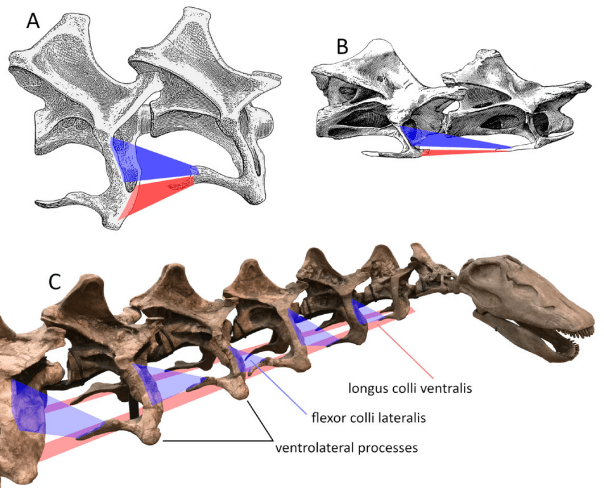 Références : Wedel, M.; Taylor, M., 2023, The biomechanical significance of bifurcated cervical ribs in apatosaurine sauropods. Vertebrate Anatomy Morphology Palaeontology. 11: 91–100.