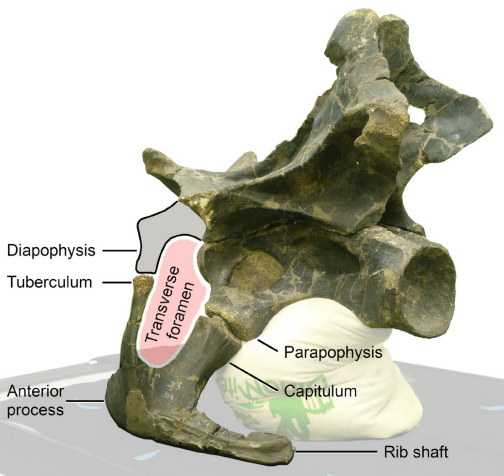 Les côtes cervicales sont des os présents chez de nombreux tétrapodes, et notamment chez les dinosaures. Il y a une paire de côtes cervicales pour chaque vertèbre cervicale, et la fonction principale de ces côtes cervicales est de servir de point d’attache musculaire. Lors de la description du sauropode turiasaurien Moabosaurus, Britt et ses collègues ont noté la présence de côtes cervicales bifurquées. Cela se traduit par la présence d’une extrémité en forme de fourche à deux pointes au niveau de chaque côte cervicale. Wedel et Taylor analysent un vaste ensemble de sauropodes, et constatent la présence de côtes cervicales bifurquées chez d’autres genres que Moabosaurus.