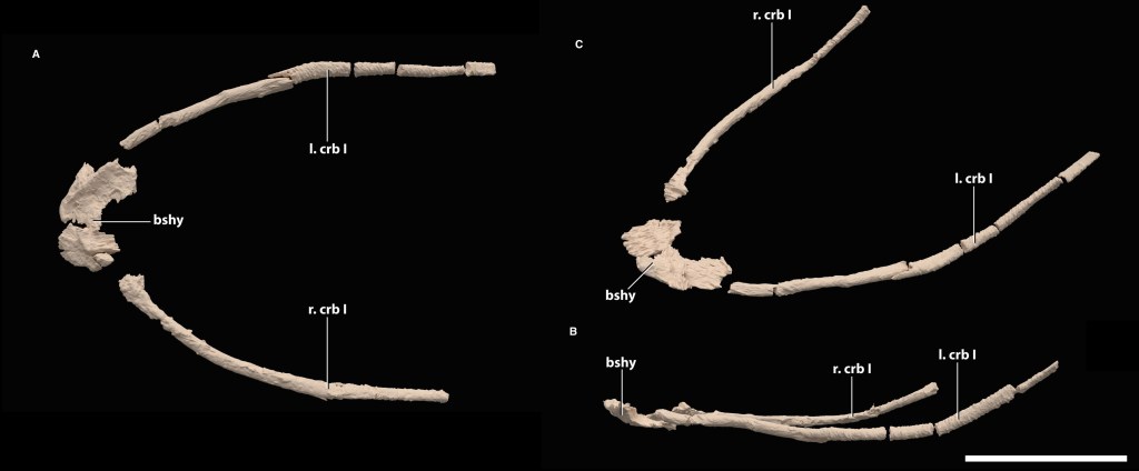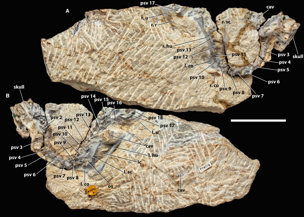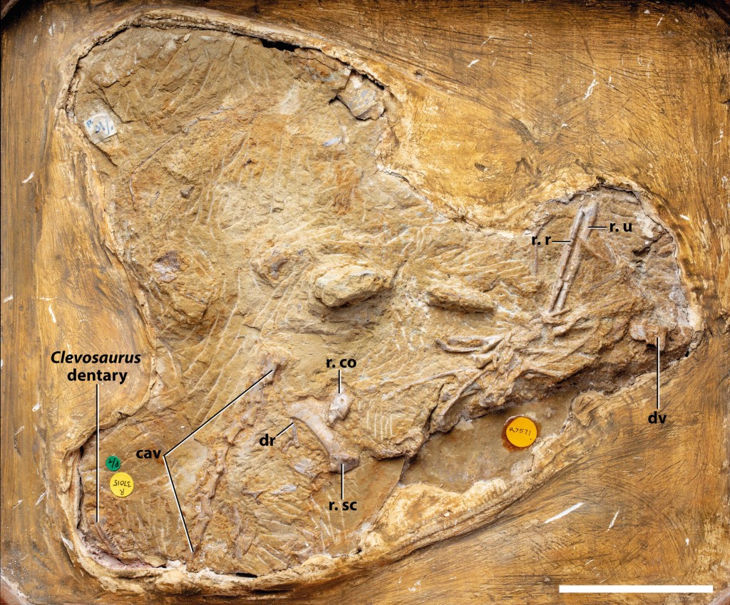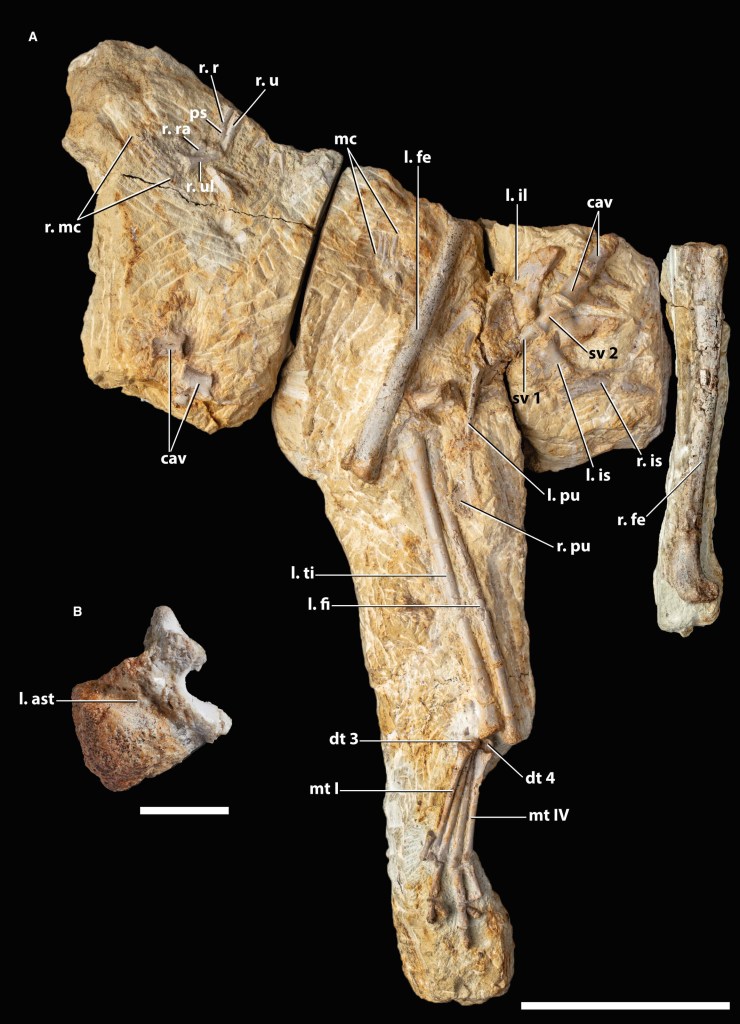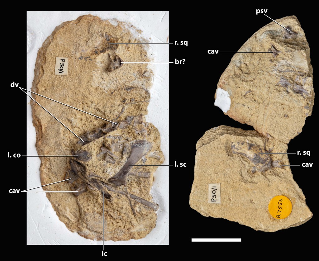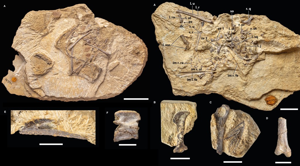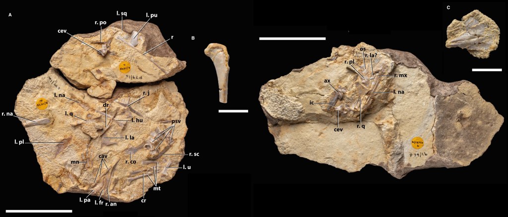 Spiekman et ses collègues ont ensuite listé les spécimens avec quelques éléments associés : deux spécimens avec chacun deux vertèbres cervicales associées (NHMUK PV R 37691 et NHMUK PV R 37721), un squamosal associé à un tibia (NHMUK PV R 7584), un angulaire associé à un pubis (NHMUK PV R 37778), un squamosal associé à un palatin (NHMUK PV R 37760), deux vertèbres dorsales associées (NHMUK PV R 37798), un lacrymal associé à un ischium (NHMUK PV R 37728), un splénial associé à un coronoïde (NHMUK PV R 3773), un coracoïde gauche associé à une interclavicule et une gastralia (NHMUK PV R 38292), un ostéoderme associé à une vertèbre caudale (NHMUK PV R 37724), deux phalanges pédales associées (NHMUK PV R 37671), , deux ostéodermes associés à une vertèbre (NHMUK PV R 37886) et un ptérygoïde associé à une vertèbre (NHMUK PV R 37697),