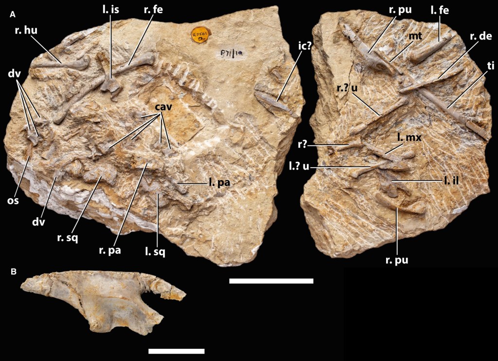 Références : Spiekman, S.N.F.; Fernandez, V.; Butler, R.J.; Dollman, K.N.; Maidment, S.C.R., 2023, A taxonomic revision and cranial description of Terrestrisuchus gracilis (Archosauria, Crocodylomorpha) from the Upper Triassic of Pant-y-Ffynnon Quarry (southern Wales). Papers in Palaeontology. 9(6): e1534.