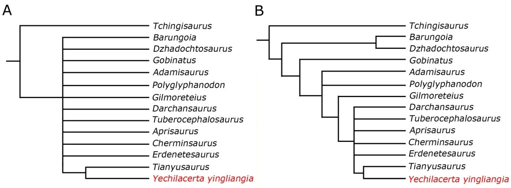 Il y a quelques années, des fouilles menées près de la ville de Ganzhou ont découvert deux spécimens de squamates dans le Maastrichtien de la formation géologique de Hekou (Gansu, Chine). Leur préparation a révélé que ces deux spécimens représentent un nouveau taxon. Xing et ses collègues décrivent ainsi ce taxon, auquel ils donnent le nom de Yechilacerta (« lézard aux dents en forme de feuilles »), avec Y. yingliangia pour espèce.