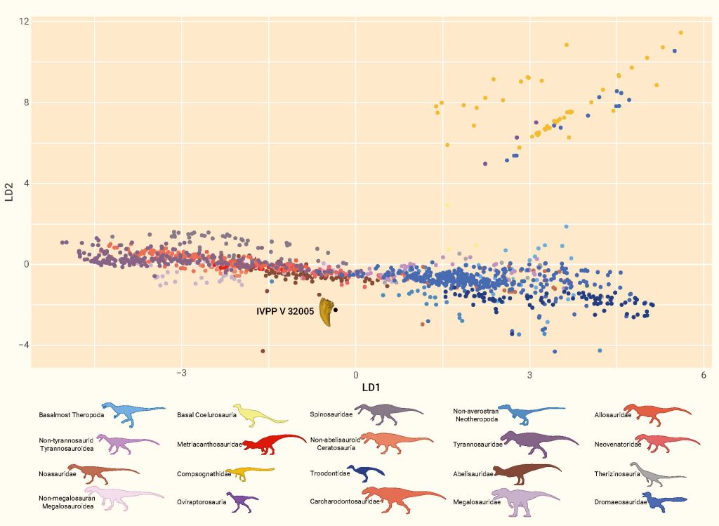 La présence de dents de dromaeosauridés du jurassique moyen implique que les fossiles des autres lignées de coelurosaures devraient également être connus pour cette époque. Etant donné que cela n’est pas le cas, il est possible que ces dents du jurassique moyen n’appartiennent pas à des dromaeosauridés mais à un autre groupe de théropodes. Yu et ses collègues ont donc réalisé une analyse morphométrique qui a retrouvé IVPP V 32005 dans le morphospace des metriacanthosauridés. Par conséquent, Yu et ses collègues ont référé IVPP V 32005 à Metriacanthosauridae indet.