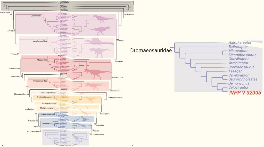 Le spécimen décrit par Yu et ses collègues est une dent isolée (IVPP V 32005) composée de la couronne dentaire. A première vue, cette dent présente de très grandes similitudes morphologiques avec les dents des dromaeosauridés. Yu et ses collègues l’ont confirmé par une analyse phylogénique où IVPP V 32005 est classé en taxon-soeur de Velociraptor. Les dents isolées de cette famille de théropodes ne sont pas rares au jurassique, mais posent des problèmes au niveau de notre compréhension de la phylogénie des théropodes. En effet, les dromaeosauridés sont les seuls coelurosaures dérivés connus du jurassique moyen, et n’y sont représentés que par des dents.