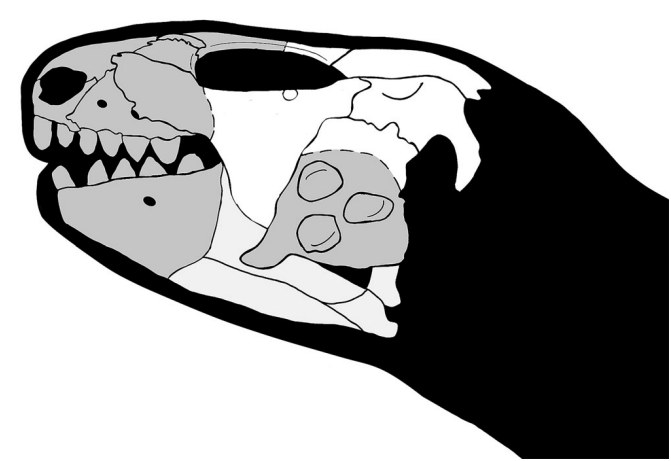 Références : Mueller, B.D.; Small, B.J.; Jenkins, X.; Huttenlocker, A.K.; Chatterjee, S., 2023, Cranial anatomy of Libognathus sheddi Small, 1997 (Parareptilia, Procolophonidae) from the Upper Triassic Dockum Group of West Texas, USA. The Anatomical Record.