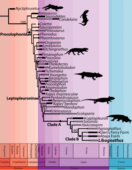 Mueller, B.; Chatterjee, S., 2003, Skull anatomy of Libognathus sheddi (Parareptilia: Procolophonia) from the upper Triassic Cooper canyon formation of West Texas. Journal of Vertebrate Paleontology. 23(3): 80A.