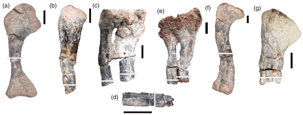 Références : Farias, B.D.M.d.; Desojo, J.B.; Cerda, I.A.; Ribeiro, A.M.; Ferigolo, J.; Carlisbino, T.; Schultz, C.L.; Mastrantonio, B.M.; Soares, M.B., 2023, Bone histology supports gregarious behavior and an early ontogenetic stage to Decuriasuchus quartacolonia (Pseudosuchia: Loricata) from the Middle-Late Triassic of Brazil. The Anatomical Record.