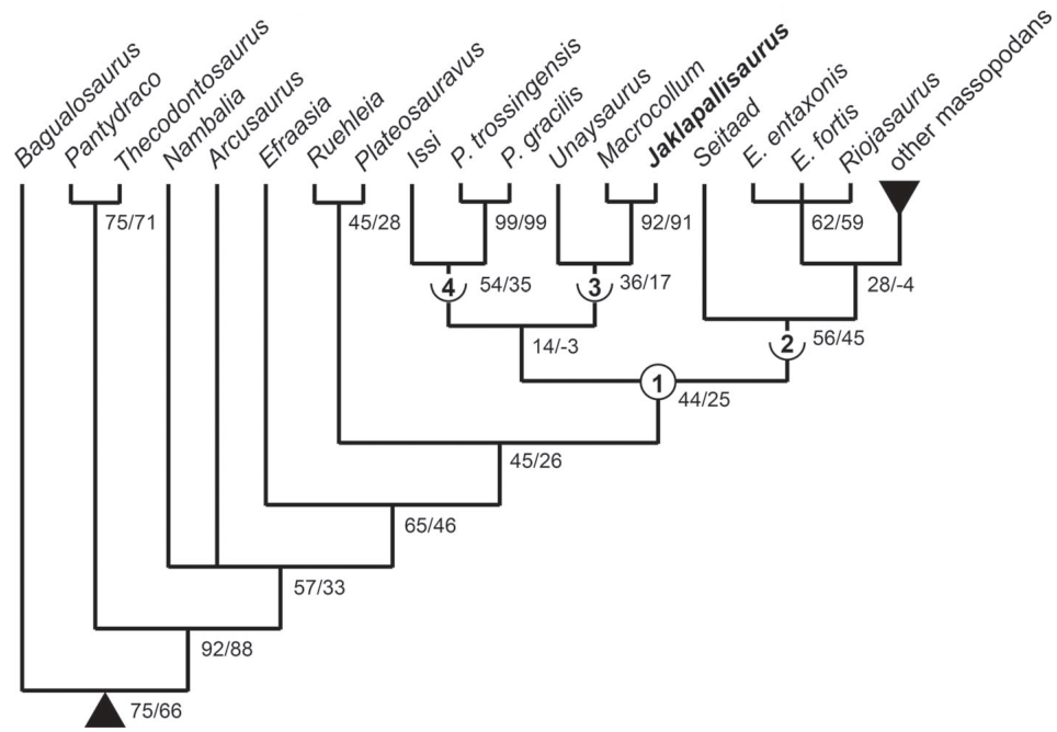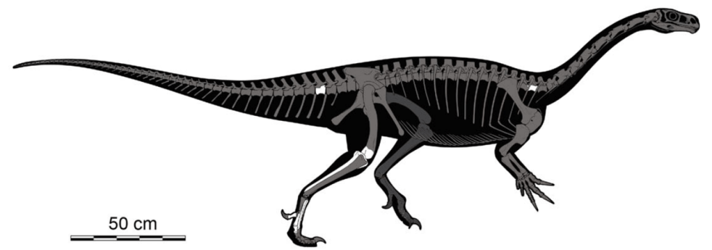 Références : Ezcurra, M.D.; Müller, R.T.; Novas, F.E.; Chatterjee, S., 2023, Osteology of the sauropodomorph dinosaur Jaklapallisaurus asymmetricus from the Late Triassic of central India. The Anatomical Record.