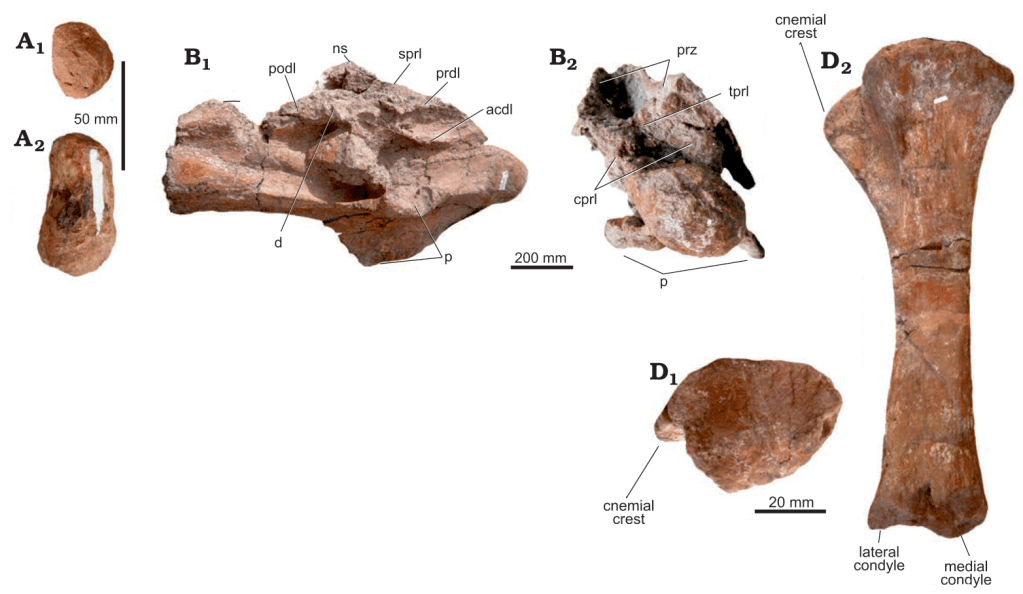 Références : Simón, M.E.; Salgado, L., 2023, A new gigantic titanosaurian sauropod from the early Late Cretaceous of Patagonia (Neuquén Province, Argentina). Acta Palaeontologica Polonica. 68(4).