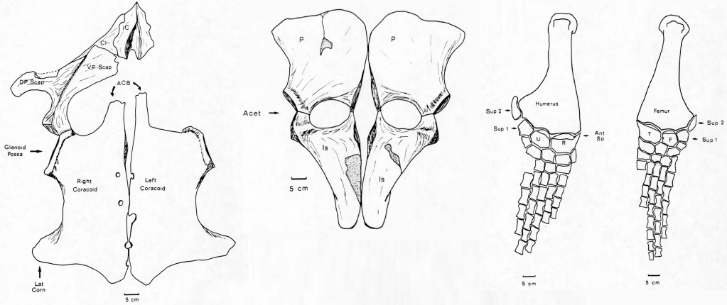 Adams, D.A., 1977, Trinacromerum bonneri, a new polycotylid plesiosaur from the Pierre Shale of South Dakota and Wyoming. Unpublished Master’s thesis, University of Kansas, Lawrence. 97 pp.