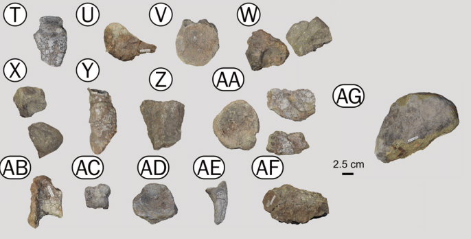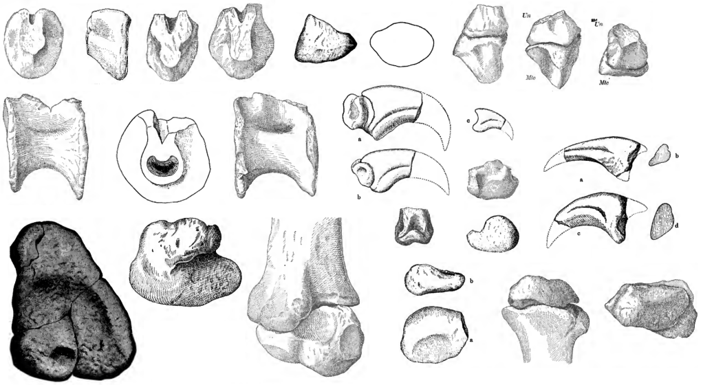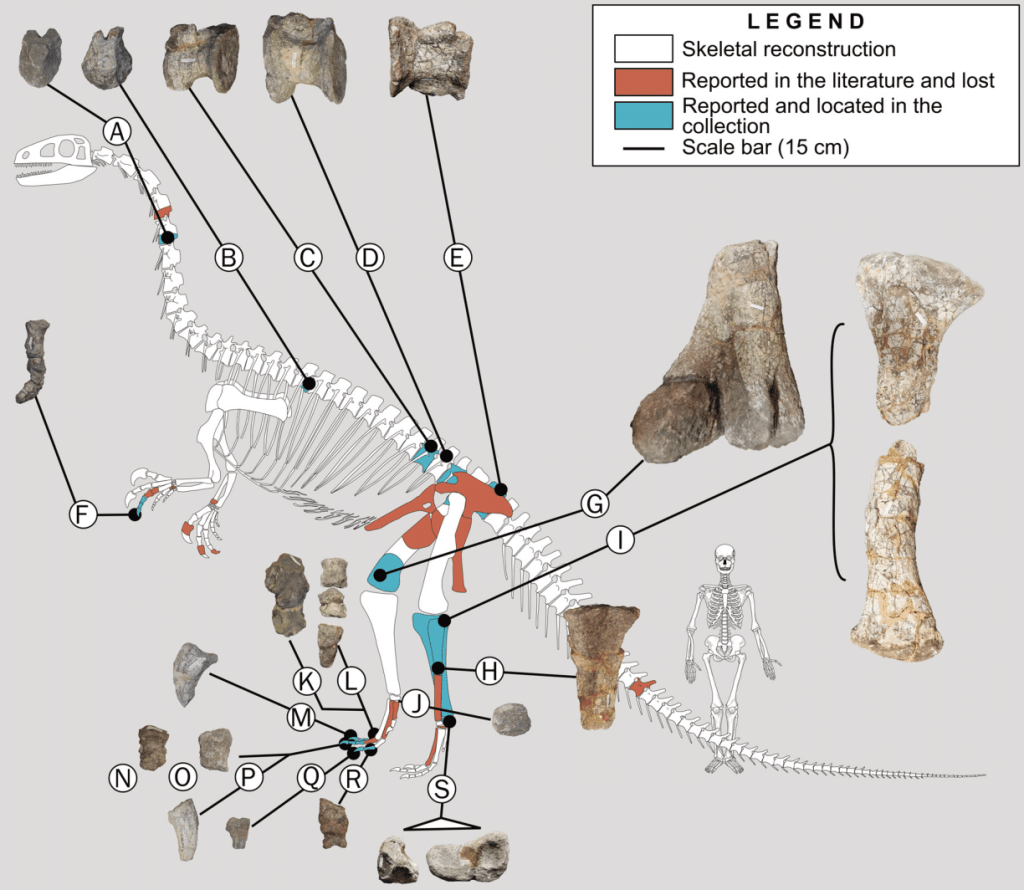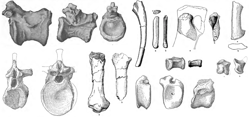Toutes les images proviennent de Regalado Fernández et al., 2023, à l’exception de la première qui provient de Meyer et Thüring, 2003, de la deuxième qui provient de Quenstedt, 1958, de la troisième, de la quatrième, de la cinquième et de la huitième qui proviennent de von Huene, 1907, de la sixième qui provient de Jaekel, 1911 et de la septième qui provient de Newton, 1898