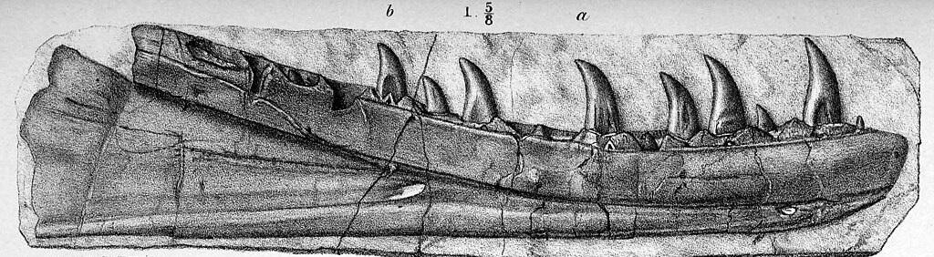 Newton, E.T., 1898, On a megalosaurid jaw from the Rhaetic Beds near Bridgend (Glamorganshire). Quarterly Journal of the Geological Society. 55: 89-96.