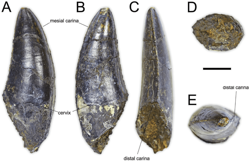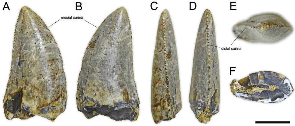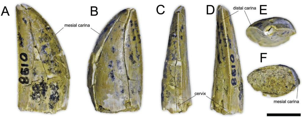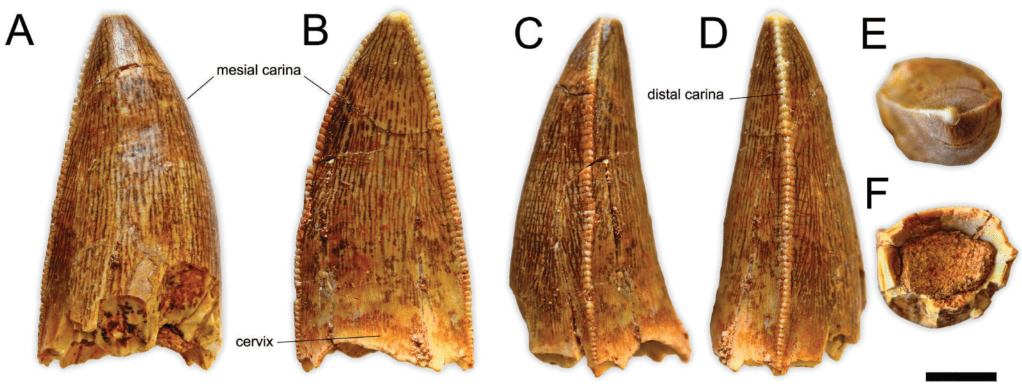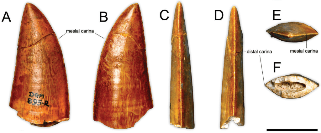 Les spécimens décrits par Delcourt et ses collègues sont 179 couronnes dentaires isolées. Leur morphologie est similaire aux dents des abelisauridés, mais aussi des unenlagiinés, des noasauridés et des carcharodontosauridés. En combinant des analyses phylogéniques et morphométriques, Delcourt et ses collègues ont constaté que l’ensemble de ces 179 dents sont attribuables à Abelisauridae indet., et sont classables en sept morphotypes.