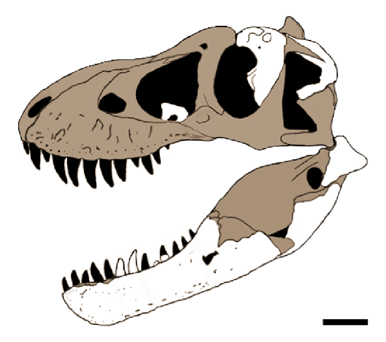 Tyrannosaurus est un genre de théropode tyrannosauridé connu dans le Maastrichtien d’un très grand nombre de formations géologiques d’Amérique du Nord. Il était jusque là uniquement représenté par son espèce-type T. rex, qui est documentée par des fossiles très nombreux et complets de plusieurs stades ontogéniques. En 1983, Donald Staton et Joe LaPoint découvrirent un dentaire de Tyrannosaurus dans le Campanien-Maastrichtien de la formation géologique d’Hall Lake (Nouveau-Mexique, Etats-Unis). Plus tard dans l’année, une équipe de paléontologues fouilla le site de la découverte et découvrit d’autres éléments du crâne.