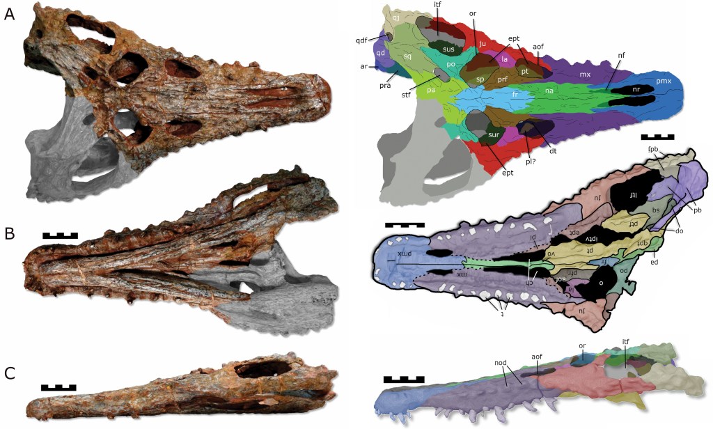 de Simao-Oliveira, D.; Pinheiro, F.L.; Andrade, M.B.; Pretto, F.A., 2022, Redescription, taxonomic revaluation and phylogenetic affinities of Proterochampsa nodosa (Archosauriformes: Proterochampsidae) from the Early Late Triassic of the Candelaria sequence (Santa Maria Supersequence). Zoological Journal of the Linnean Society. 196: 1310-1332.