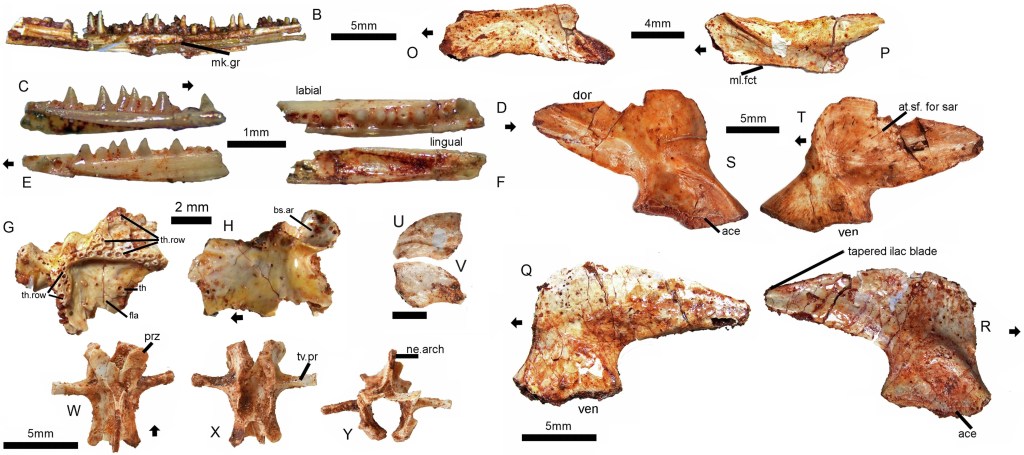 Références : Cawthorne, M.; Whiteside, D.I.; Benton, M.J., 2024, Latest Triassic terrestrial microvertebrate assemblages from caves on the Mendip palaeoisland, S.W. England, at Emborough, Batscombe and Highcroft Quarries. Proceedings of the Geologists’ Association.