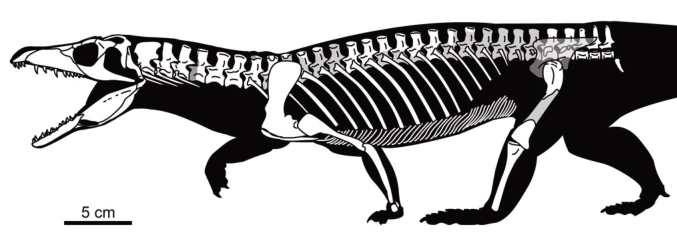 Références : de Oliveira, T.M.; da Silva, J.L.; Kerber, L.; Pinheiro, F.L., 2024, The postcranial skeleton of Teyujagua paradoxa (Reptilia: Archosauromorpha) from the early Triassic of South America. The Anatomical Record.
